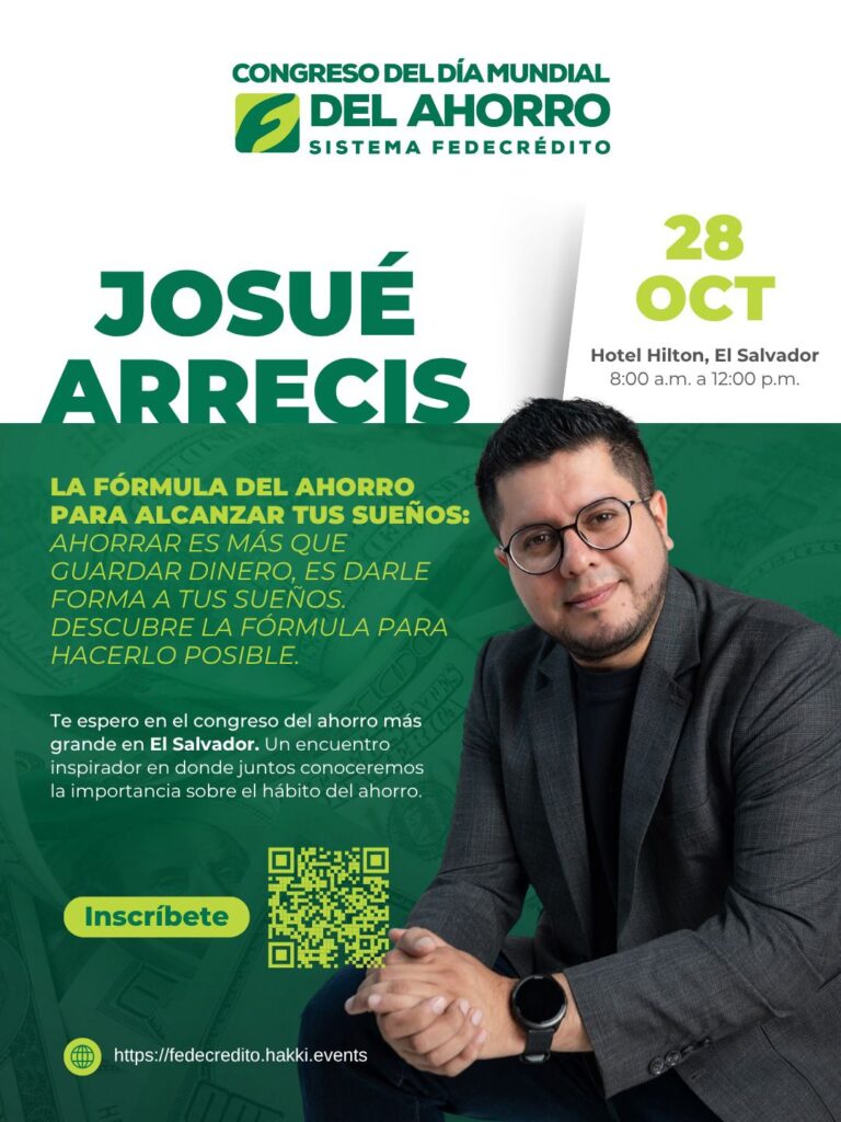El conferencista y mentor financiero guatemalteco Josué Arrecis participará como ponente principal en la sexta edición del Congreso del Día Mundial del Ahorro, organizado por Fedecrédito en El Salvador. Este evento, que reunirá a líderes en educación financiera y desarrollo personal de toda Latinoamérica, se celebrará el 28 de octubre y busca fomentar el hábito del ahorro como una herramienta esencial para cumplir metas y sueños. Arrecis abrirá el congreso con la charla inaugural titulada “La fórmula del ahorro para alcanzar tus sueños”, donde compartirá su visión sobre cómo el ahorro puede convertirse en un motor de transformación y crecimiento.